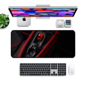 Lamborghini Red Ignition Desk Mat – Supercar Interior Edition