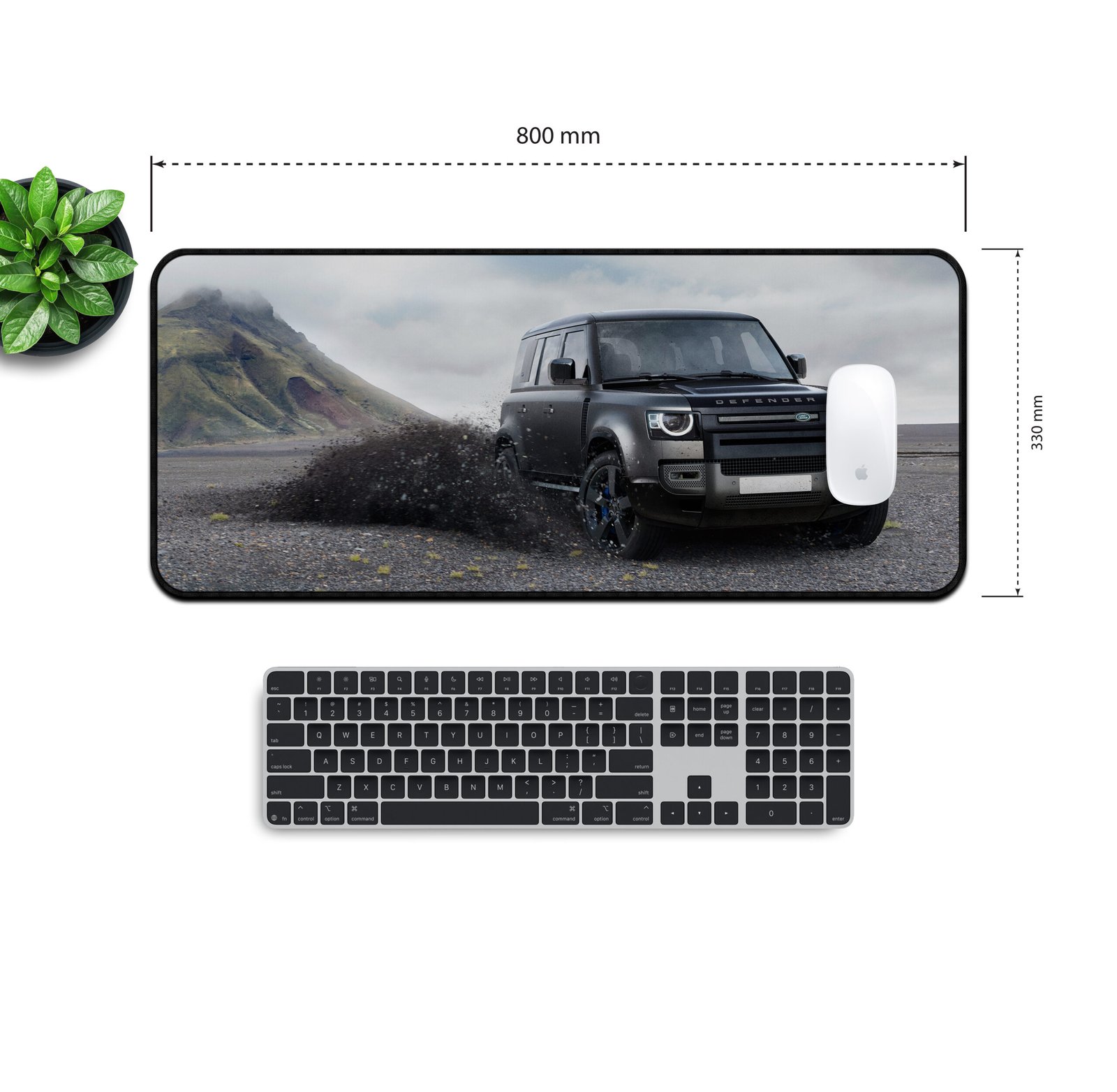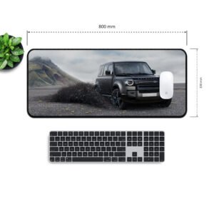 This 800Γ330 mm mat showcases the Defender kicking up mud as it conquers the outdoors β a perfect symbol of freedom and power.