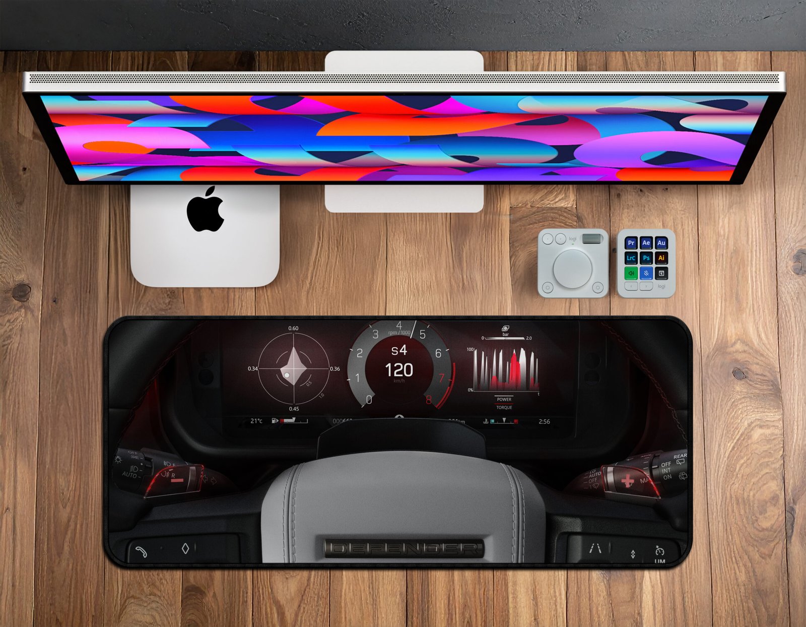 Inspired by the steering design of the Land Rover Defender, this mat combines automotive power with workspace style. The HD print captures the intricate details of the Defenderβs steering console, making it a standout piece for professionals and car lovers alike.