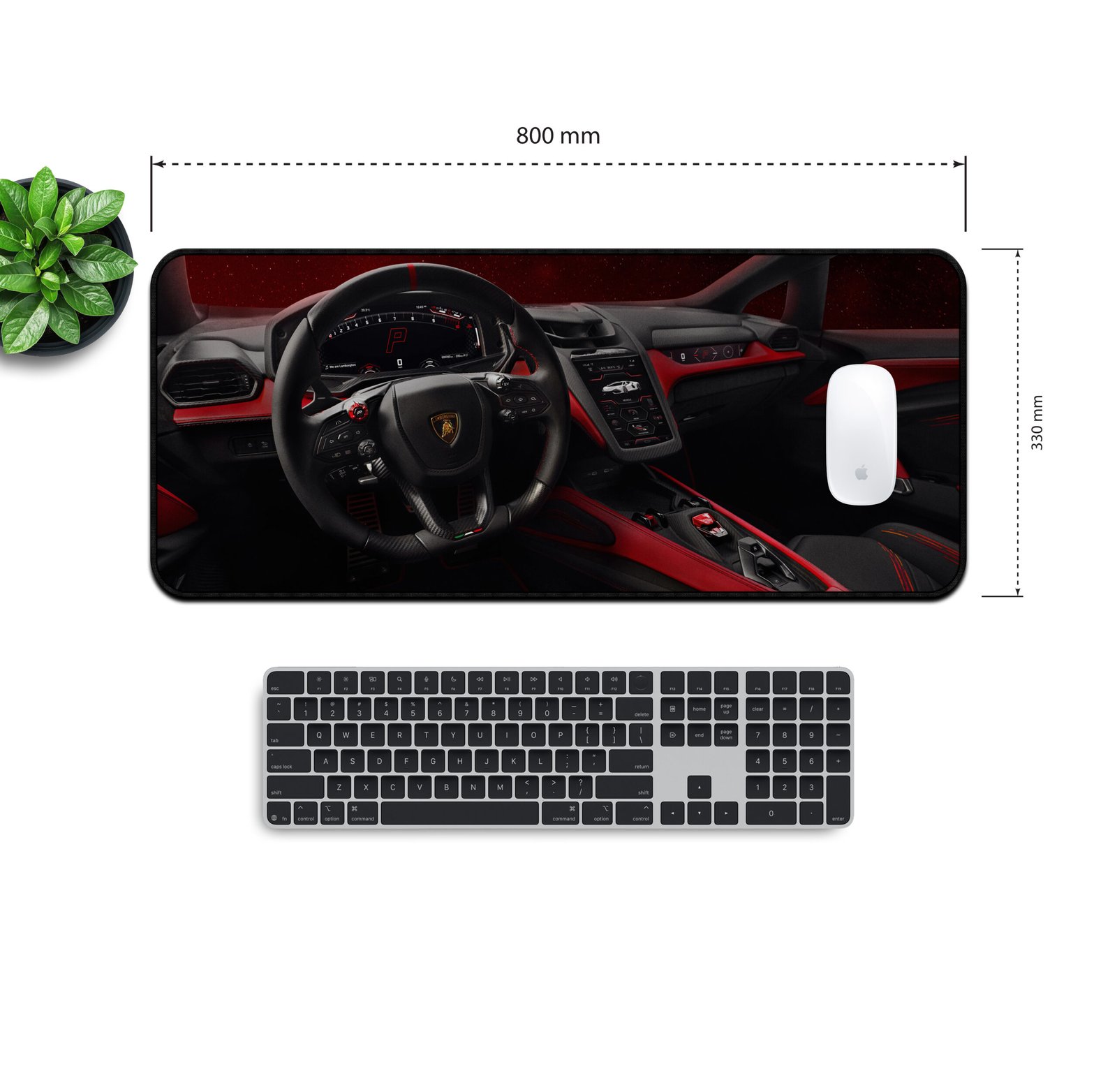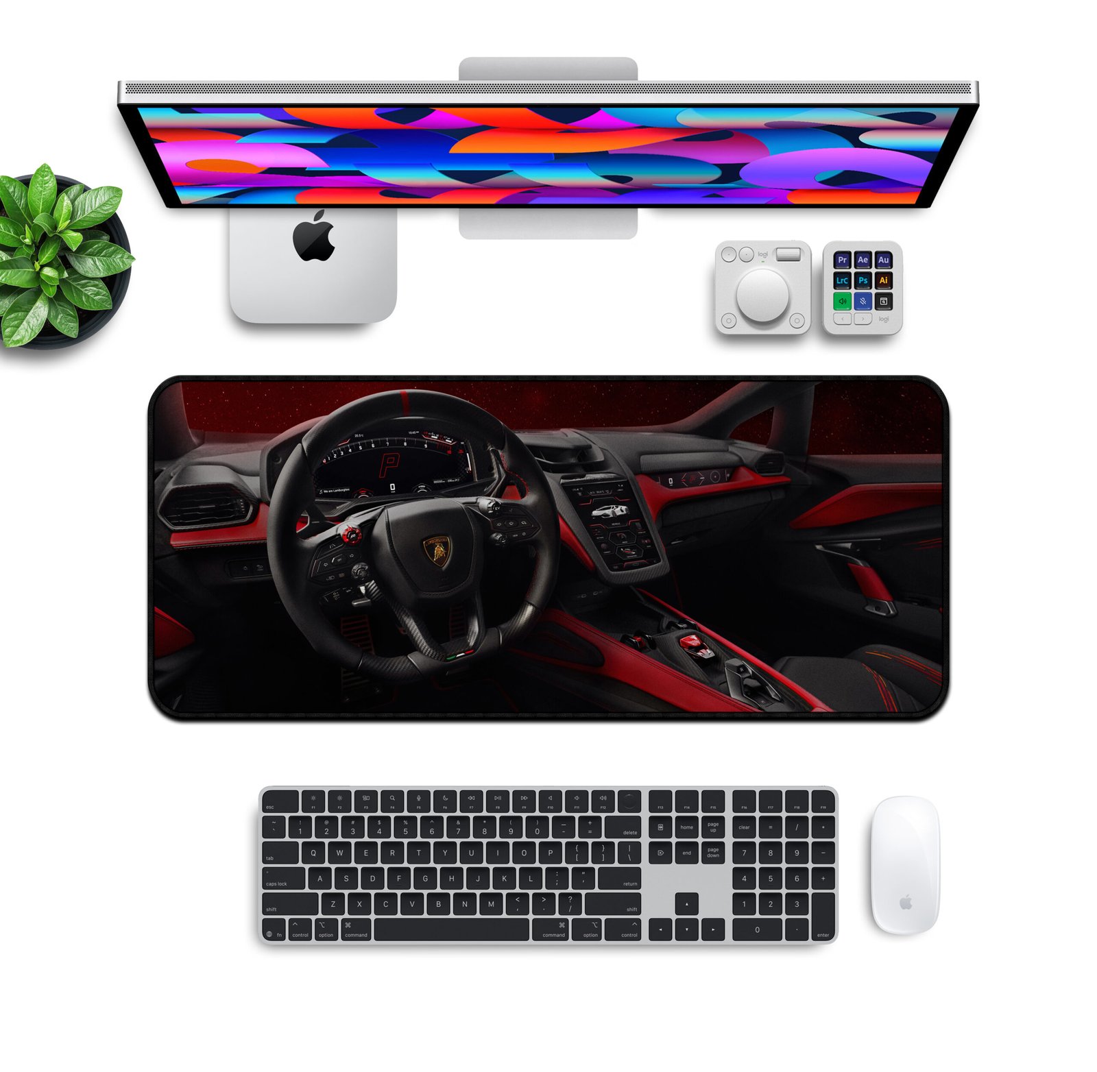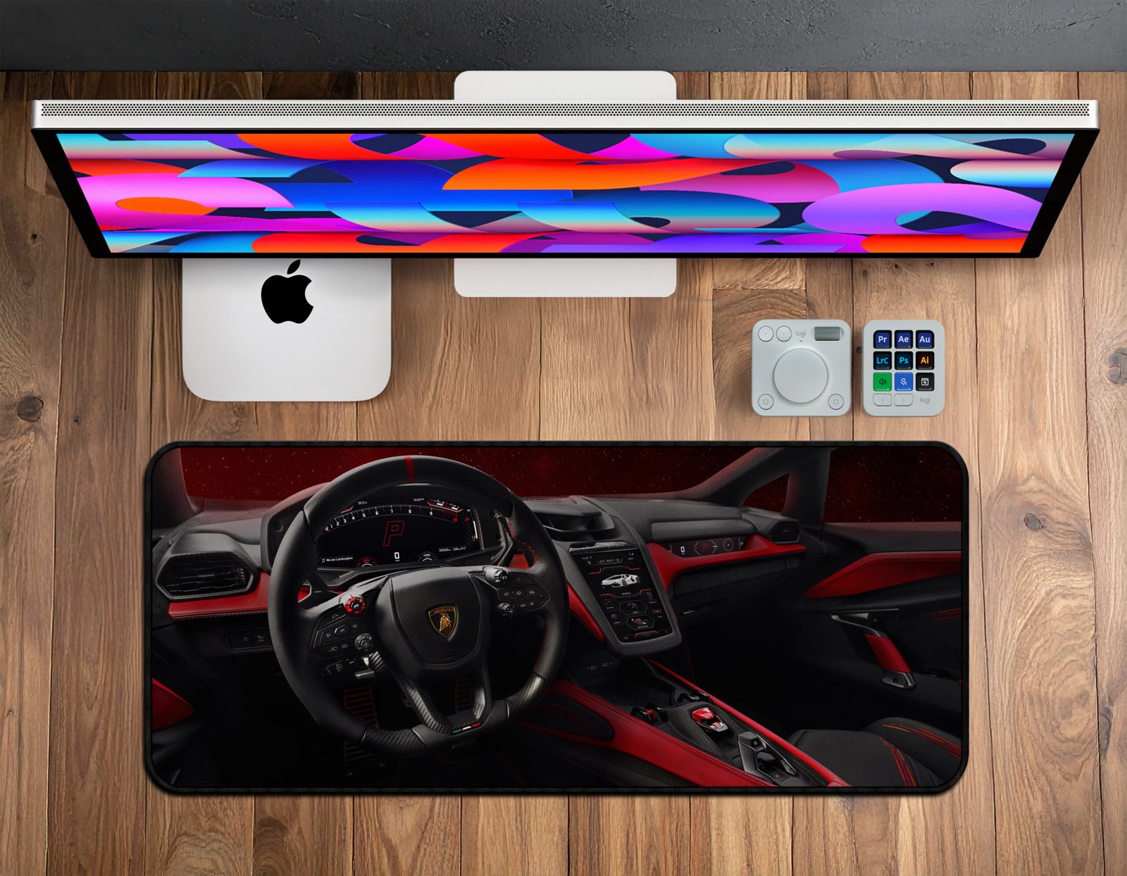 Bring your workspace to life with the Lamborghini Drive Mode Desk Mat – Supercar Cockpit Edition. This premium desk mat features an ultra-smooth micro-weave surface and HD fade-resistant print, delivering precision, comfort, and control for gaming, editing, or productivity. Its non-slip rubber base ensures perfect stability, while double-stitched edges protect against fraying. Waterproof, durable, and vibrant, it’s built to elevate every desk setup.