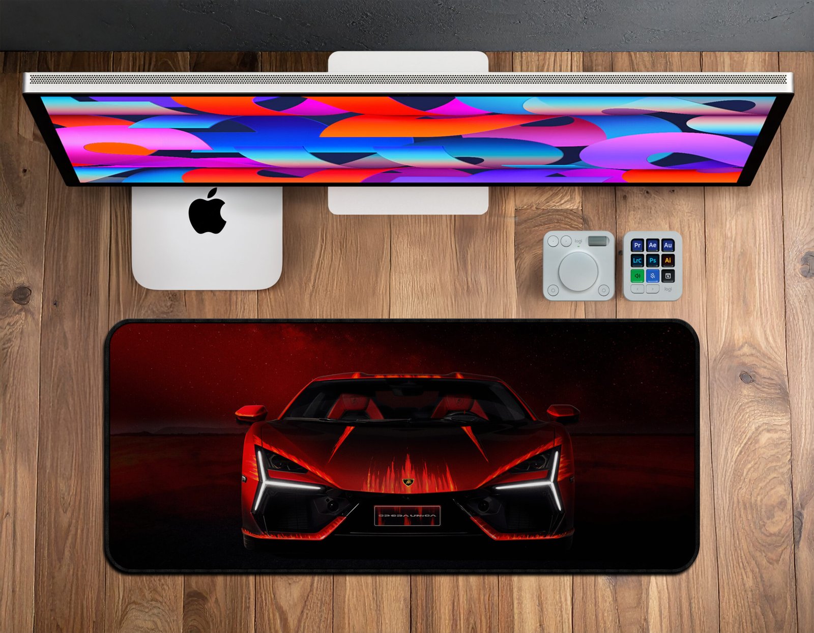Bring your workspace to life with the Lamborghini Inferno Red Desk Mat – Hypercar Edition. This premium desk mat features an ultra-smooth micro-weave surface and HD fade-resistant print, delivering precision, comfort, and control for gaming, editing, or productivity. Its non-slip rubber base ensures perfect stability, while double-stitched edges protect against fraying. Waterproof, durable, and vibrant, it’s built to elevate every desk setup.