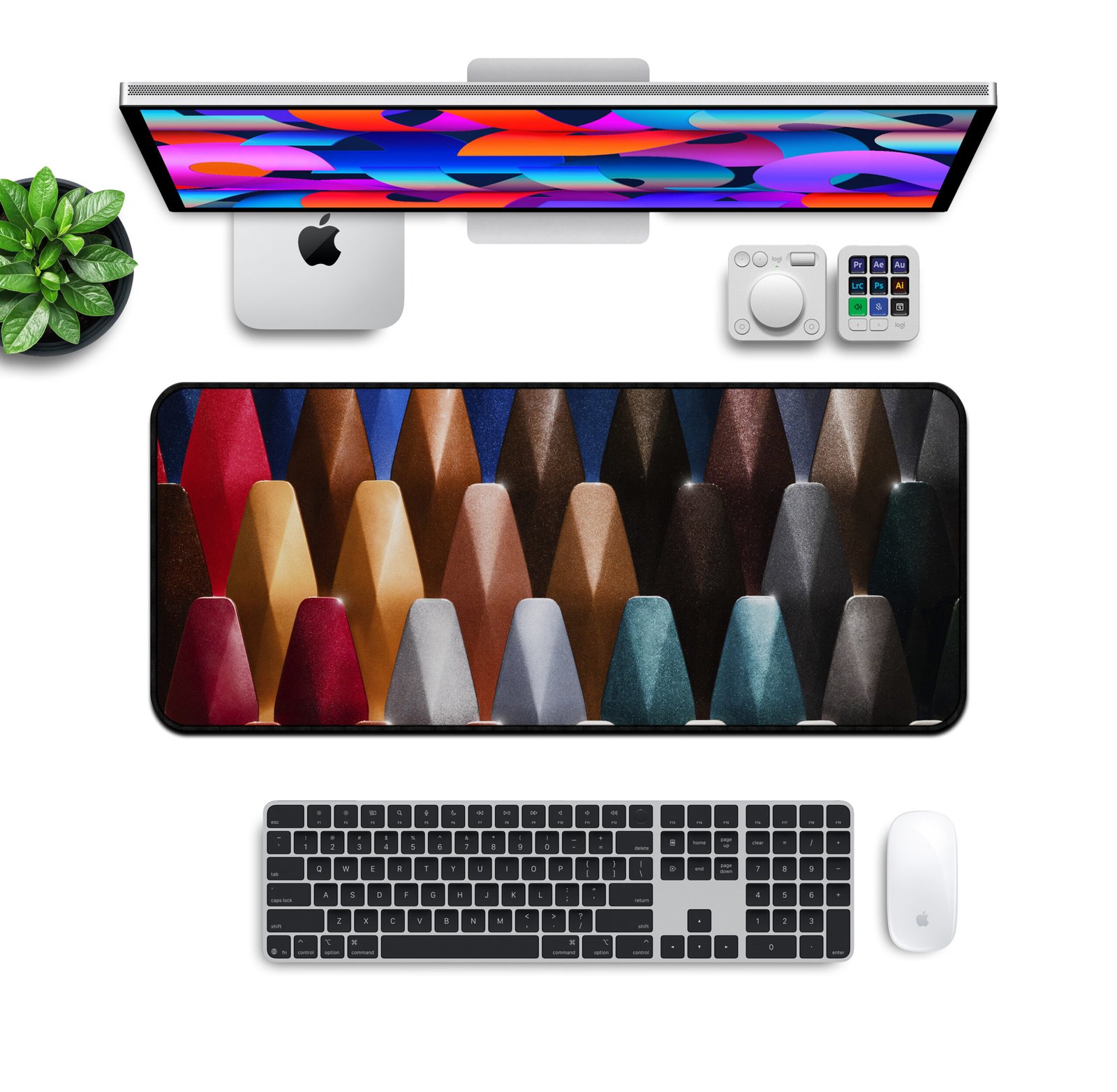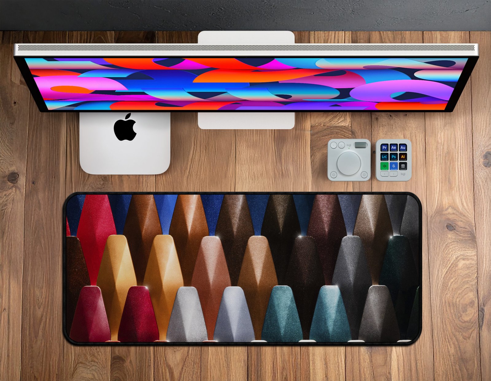 Bring your workspace to life with the Modern Spectrum Desk Mat – Designer Edition. This premium desk mat features an ultra-smooth micro-weave surface and HD fade-resistant print, delivering precision, comfort, and control for gaming, editing, or productivity. Its non-slip rubber base ensures perfect stability, while double-stitched edges protect against fraying. Waterproof, durable, and vibrant, it’s built to elevate every desk setup.