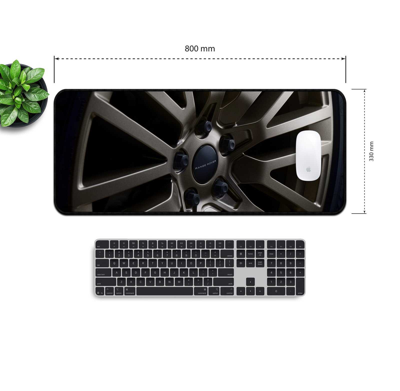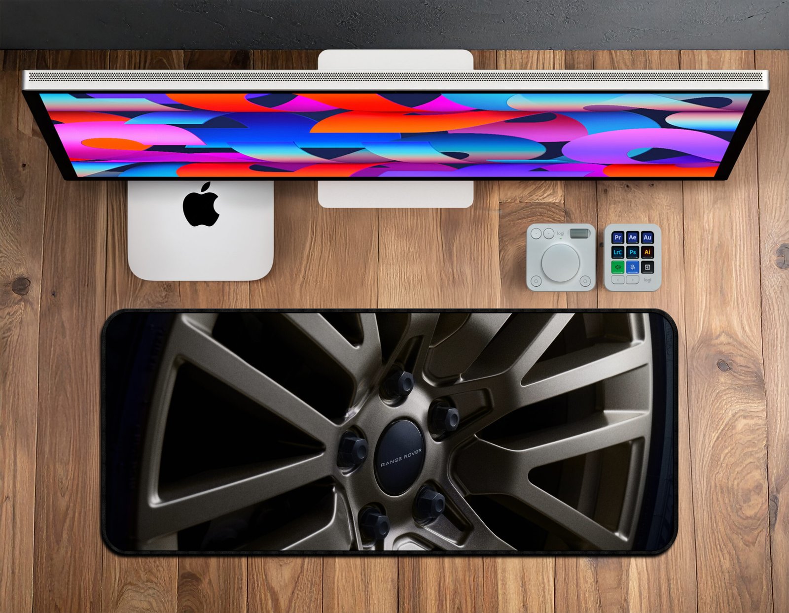 Featuring Range Roverβs distinct bronze alloy wheel, this mat adds a touch of sophistication and movement to your workspace. The premium surface ensures smooth mouse control while the anti-slip base keeps everything steady.